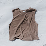 We built this as a café–racer hybrid. Something less aggressive feeling than a singlet, but still offering radical performance. We cropped the tee by 3.5", eliminating excess fabric at the waist, creating airflow, bounce, and a sense of lightness while you move. The boxy fit is a deliberate choice—equally at home in a workout as it is at the café down the street. Long story short, this top is a vibe. We only made 50 of each color to see what the people think. Personally, we love them.